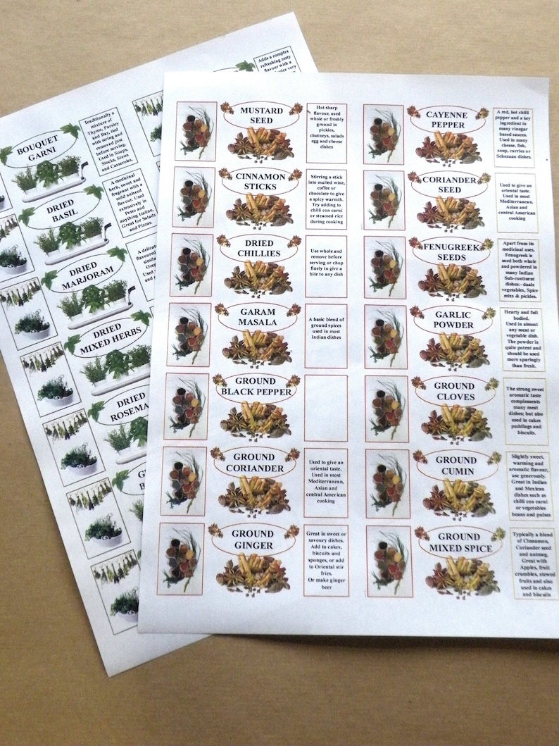 Herb and Spice Jar Labels Stickers - 38mm Round - Kraft Effect OVERVIEW 38mm diameter 72 round labels per pack Simply peel 'n' stick DESCRIPTION Organise your herbs and spices with these beautiful, kraft effect spice jar labels 72 labels per pack, printed with the names of the most commonly used herbs and spices Please see images for the full list of herbs and spices included in the pack High-quality matt vinyl stickers, each 38mm in diameter Quick and ...