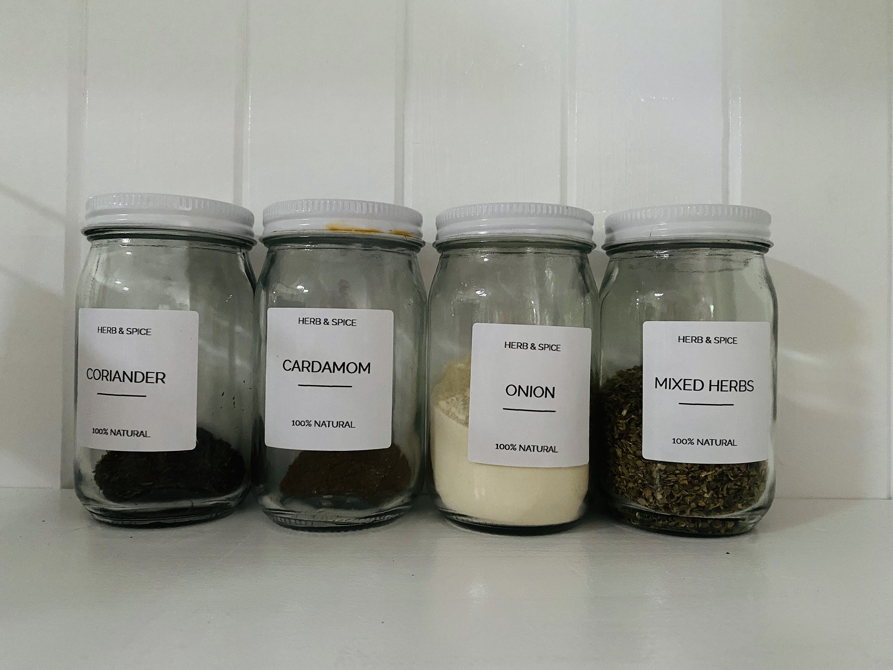 Amazon.co.uk: spice jar labels 72 Herb and Spice Jar Labels Stickers - Clear/Transparent with Black or White Print - 38mm Round (Clear with White Print) 661 £7 99 (£0.11/count) Get it Wednesday, Mar 30 - Thursday, Mar 31 FREE Delivery Glass Spice Storage Jars with Bamboo Wood Lids 150ml Set of 12 with 'Mrs Hinch' Style Cursive Font Labels.