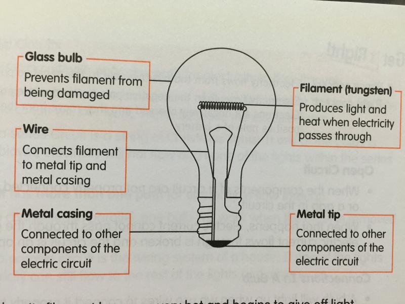 Label Light Bulb Diagram - EnchantedLearning.com Electrical contacts - the metallic base of the bulb which connects to the electrical contacts of the lamp when the bulb is in the lamp. Glass envelope - the thin layer of glass that surrounds the light bulb mechanism and the inert gases. Glass fuse enclosure - glass that insulates the bulb's fuses - located in the stem of the bulb.