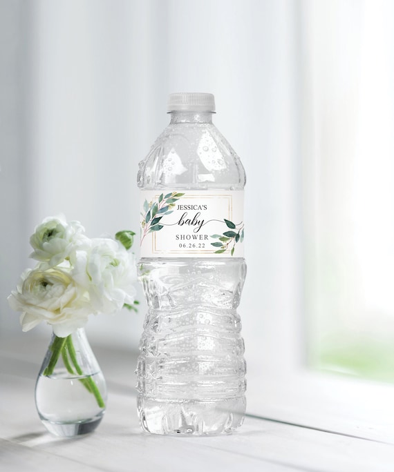 Wedding Water Bottle Labels Greenery Leaf Wedding, Bridal Shower Water Bottle Labels, Wedding Shower Waterproof Bottle Wraps - Set of 10