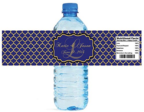 DesignThatSign 100 Gold Pattern Monogram Navy Blue Background Wedding Anniversary Engagement Party Water Bottle Labels Birthday Party Easy to Use Self ...