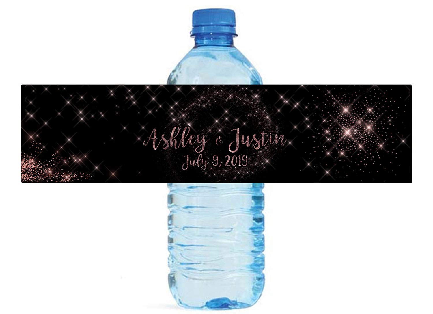 Rose Gold Dust Themed Water Bottle Labels Great for Wedding Anniversary Engagement Party Bridal Shower Sweet 16 Easy to use