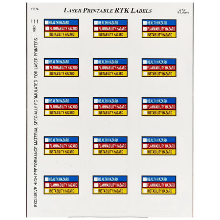 BRADY Laser Printable Right-to-Know Labels, Vinyl, Sheet, 2 ...